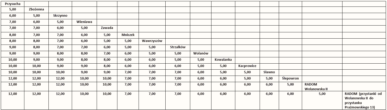 CENNIK linii PRZYSUCHA - SOŁTYSY